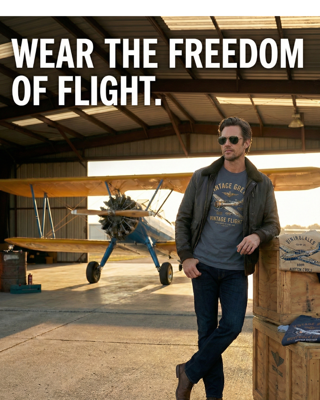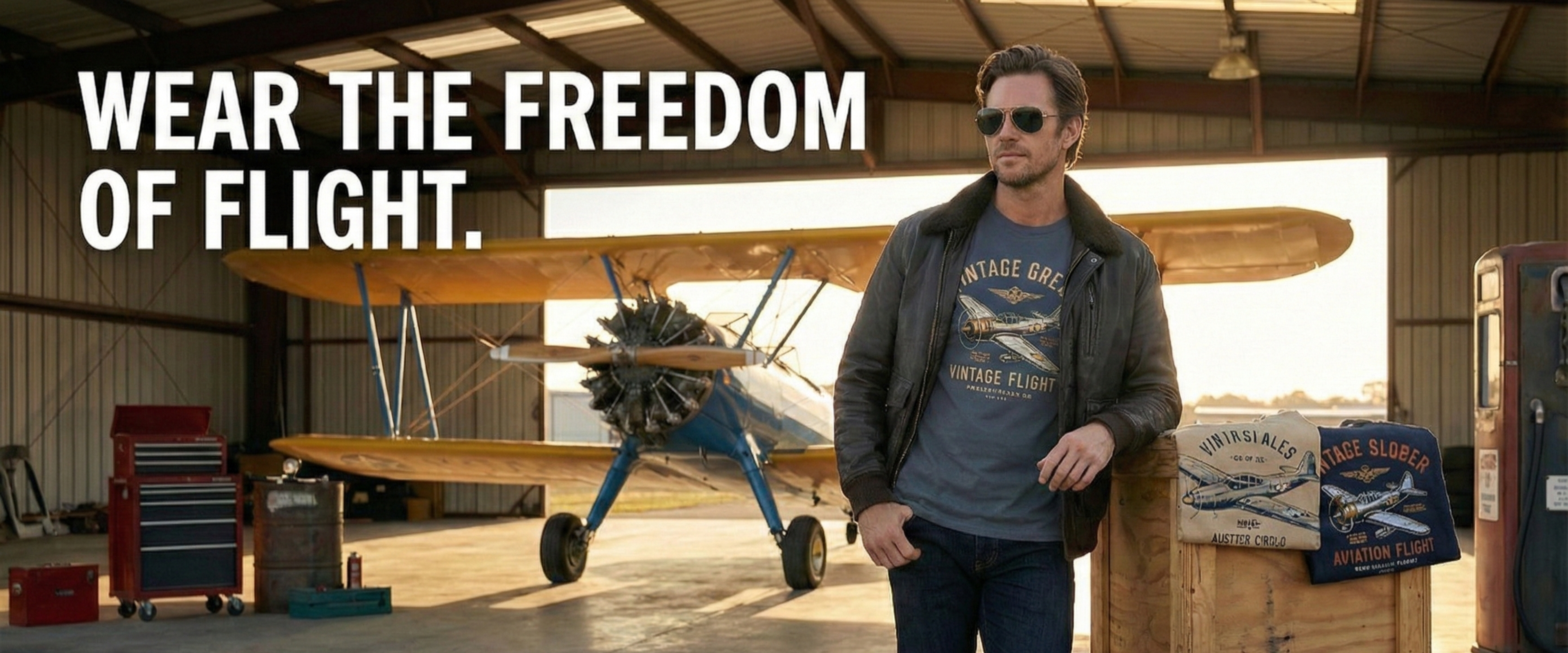 Every tee is built on premium ringspun cotton — soft enough for all-day wear, tough enough to hold up whether you're at the hangar or out to dinner. Materials may vary by design, but you'll find the specifics on each product page.